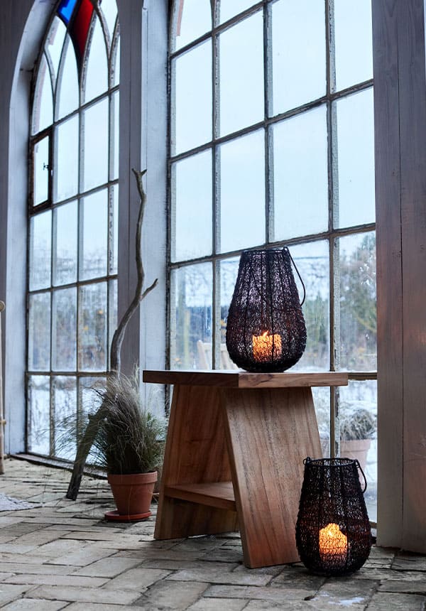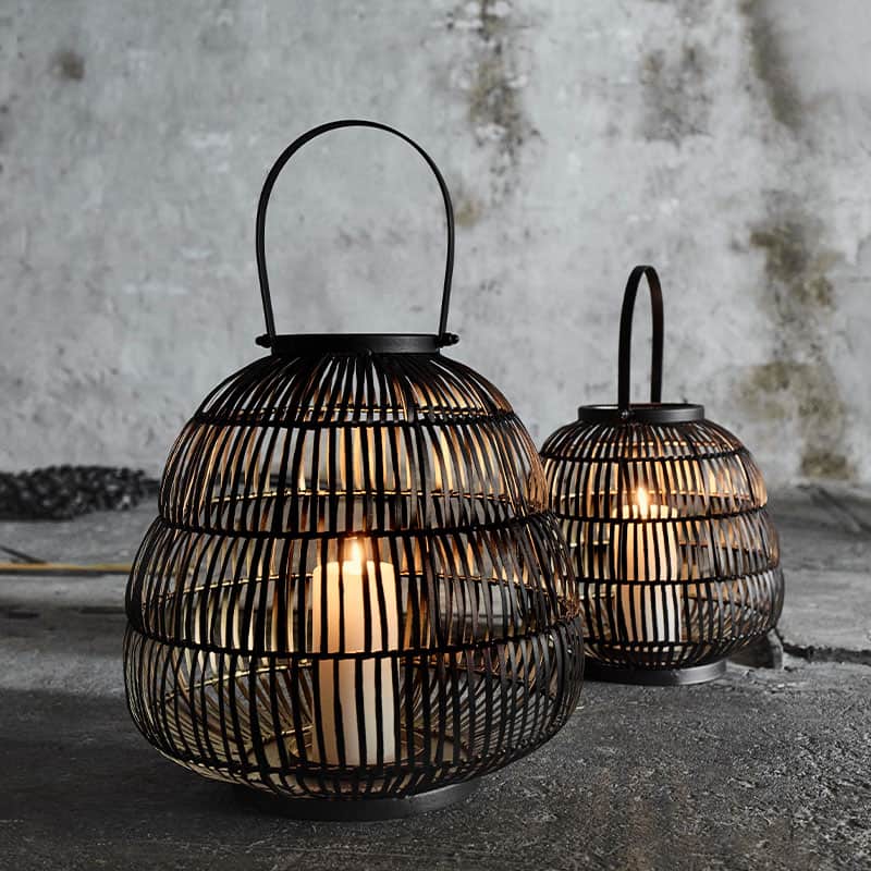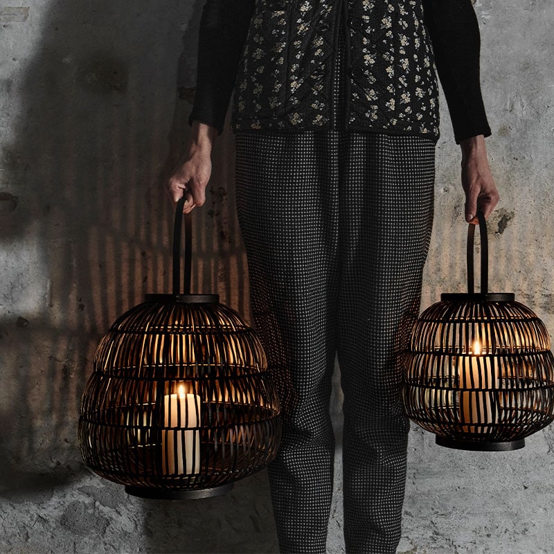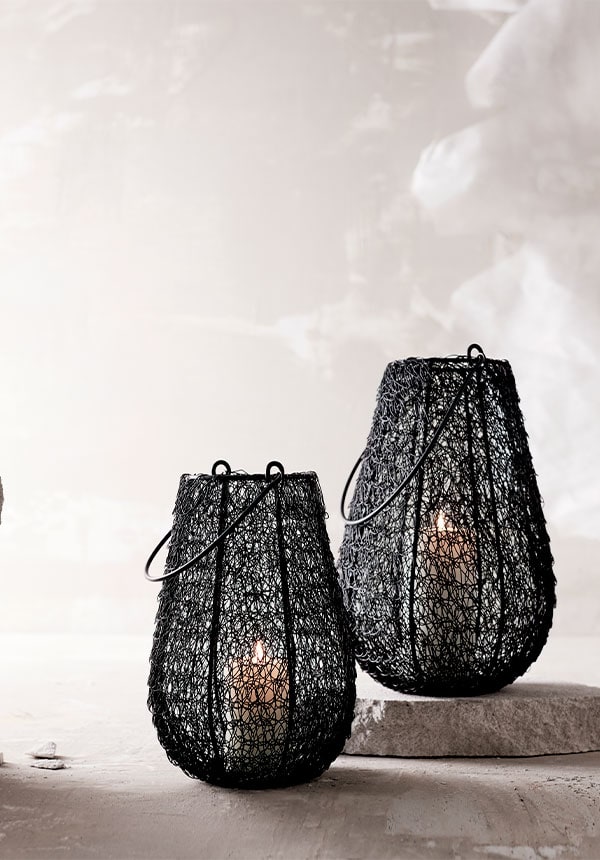 Kumo isn't just lighting; they are artworks in themselves. Inspired by a spider's web, the Kumo lanterns are crafted from intricate, tangled wires, detailed and coiled metal bands embracing the lantern's organic shape. When you illuminate the Kumo lanterns, their beautiful pattern creates an enchanting, dancing interplay of shadows on floors and walls.