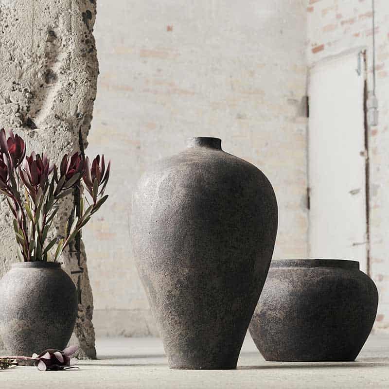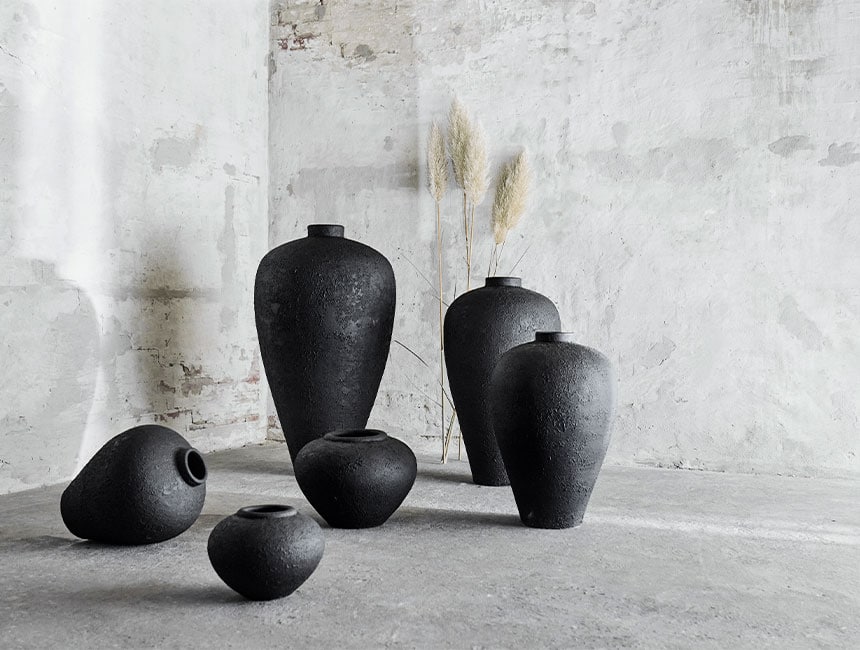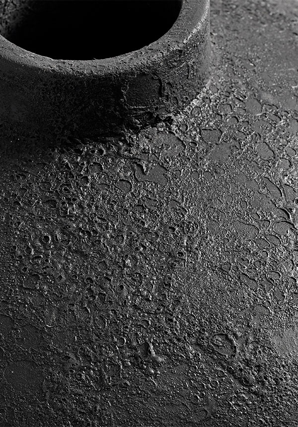Each jar in the Luna collection is handcrafted in terracotta and expresses the tactile texture that defines Muubs' products so exquisitely. Creating these jars requires special craftsmanship - the paint is applied, and a coating is carefully hand-burned with a gas flame to achieve the tactile and storytelling surface.
