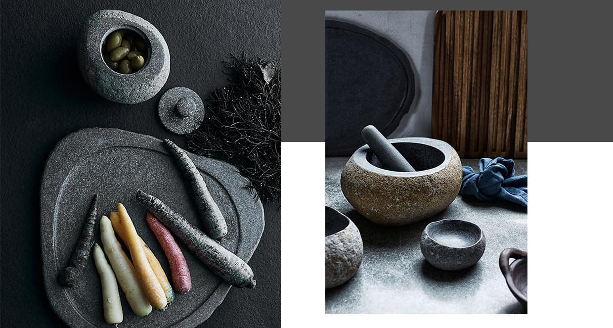 Find your roots and enjoy the tactile surfaces when you serve your dinner arrangement with the riverstone plates from the Valley collection.