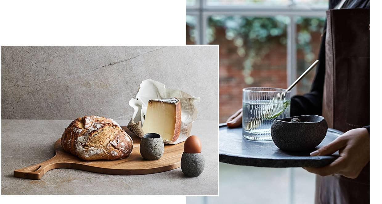 The riverstone series bring nature's own shapes and edges to your dinner table. Valley has a polished surface but a raw, natural unpolished edge.